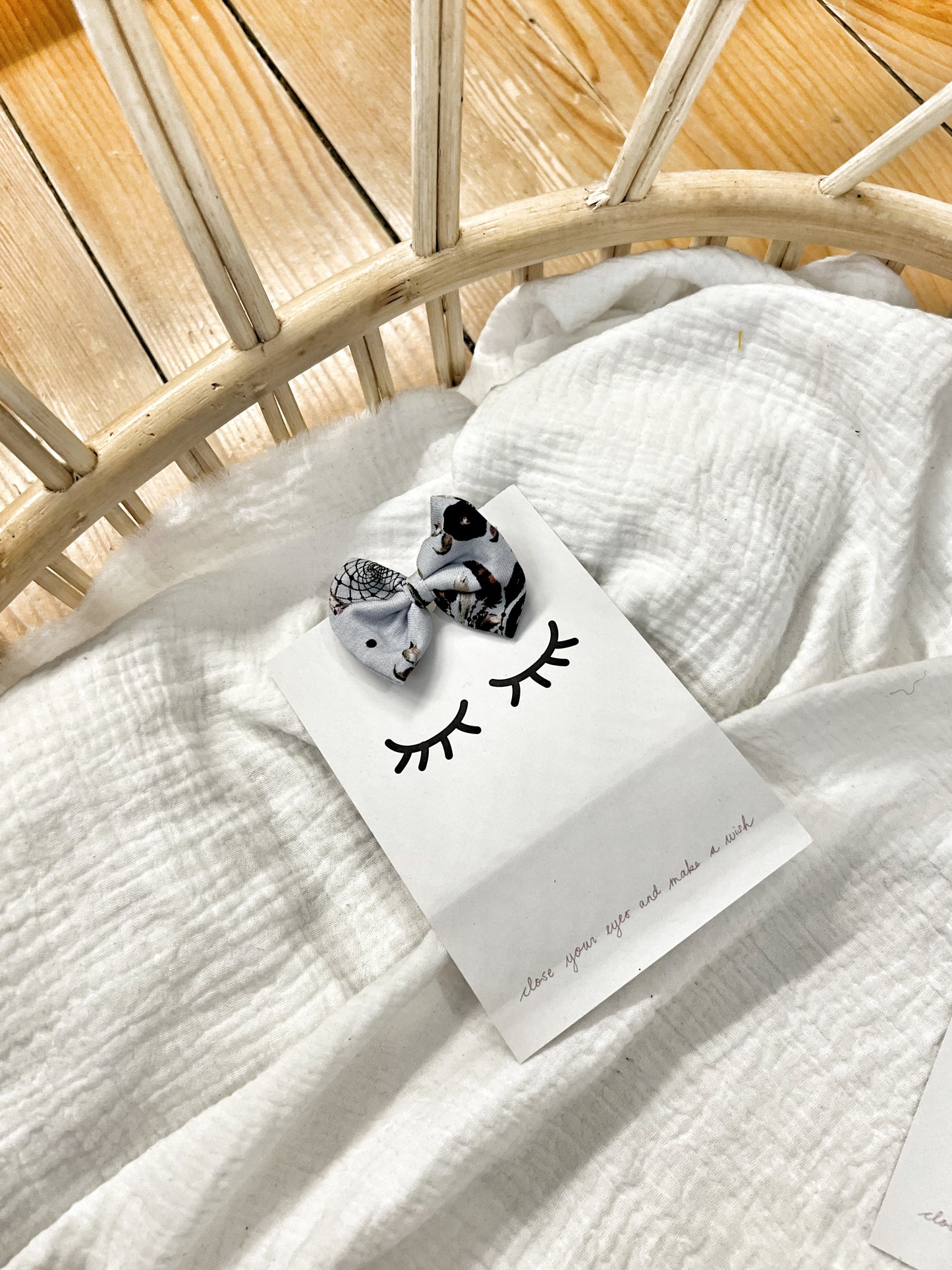 Schleife mit Metall Clip und eine sleepy eyes Karte.
