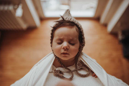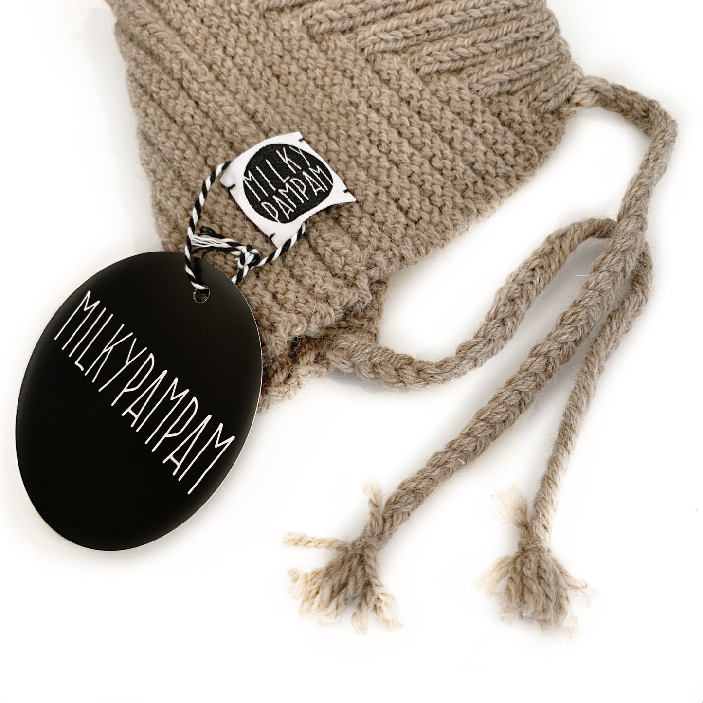 Die Mütze hält die Ohren warm, und kann zugeknotet werden dadurch kann das Kind die Mütze nicht einfach so aus dem Kinderwagen rauswerfen.