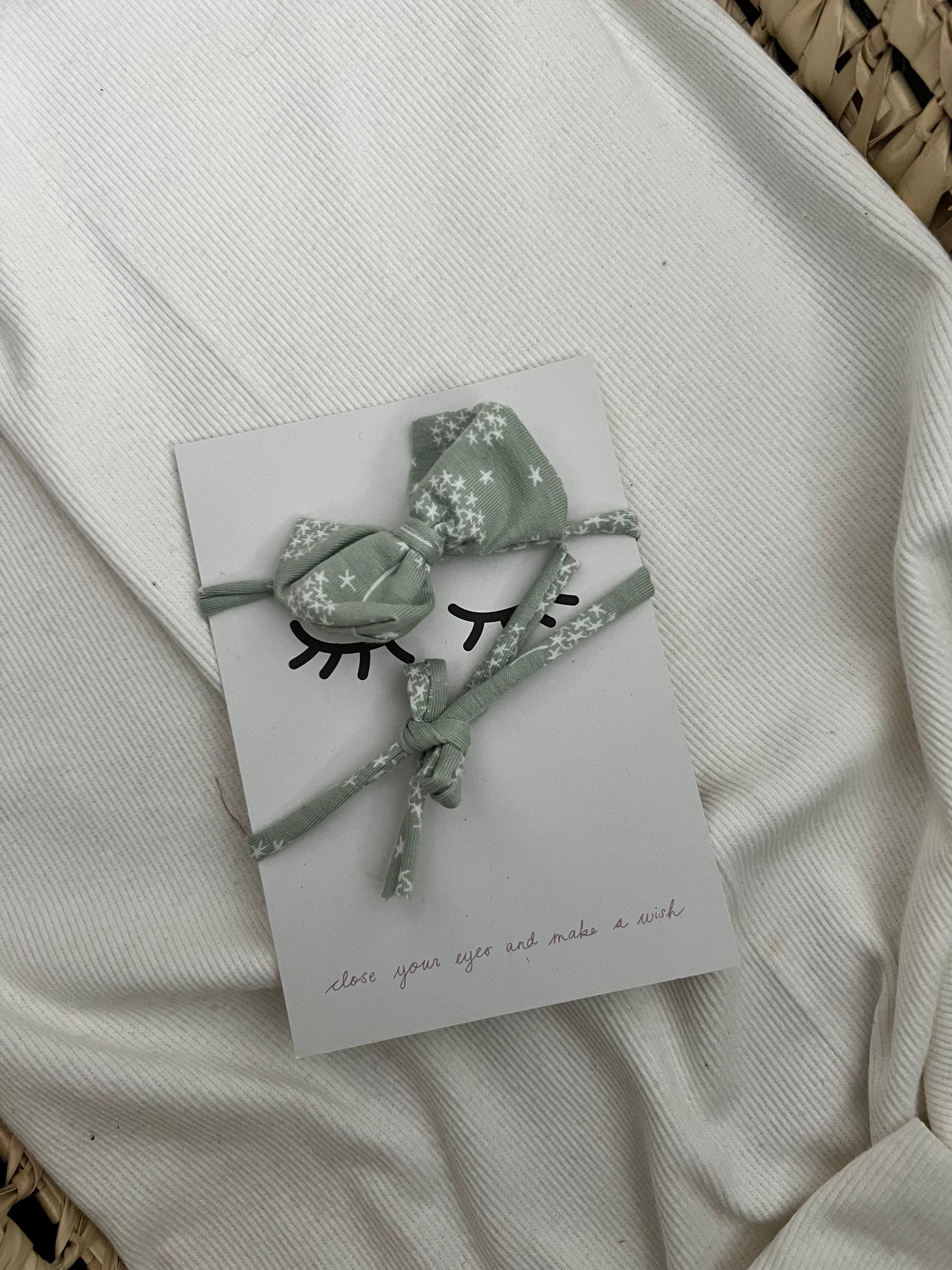 Dünnes Jersey Band mit Schleife zum selbst knoten / verstellen und eine sleepy eyes Karte.